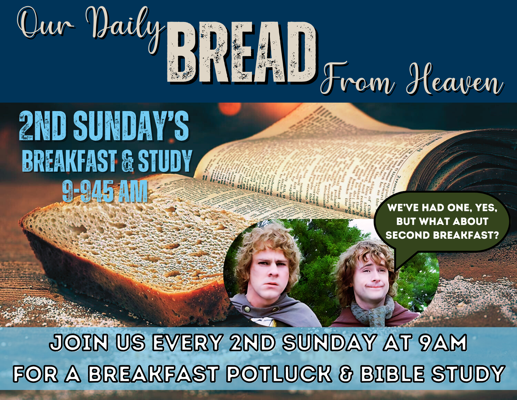 Join us every 2nd Sunday for a breakfast potluck during Sunday School and Bible Study! No need to bring anything if you’re not able. However, if you’re able to bring a dish or item to share that always helps.
