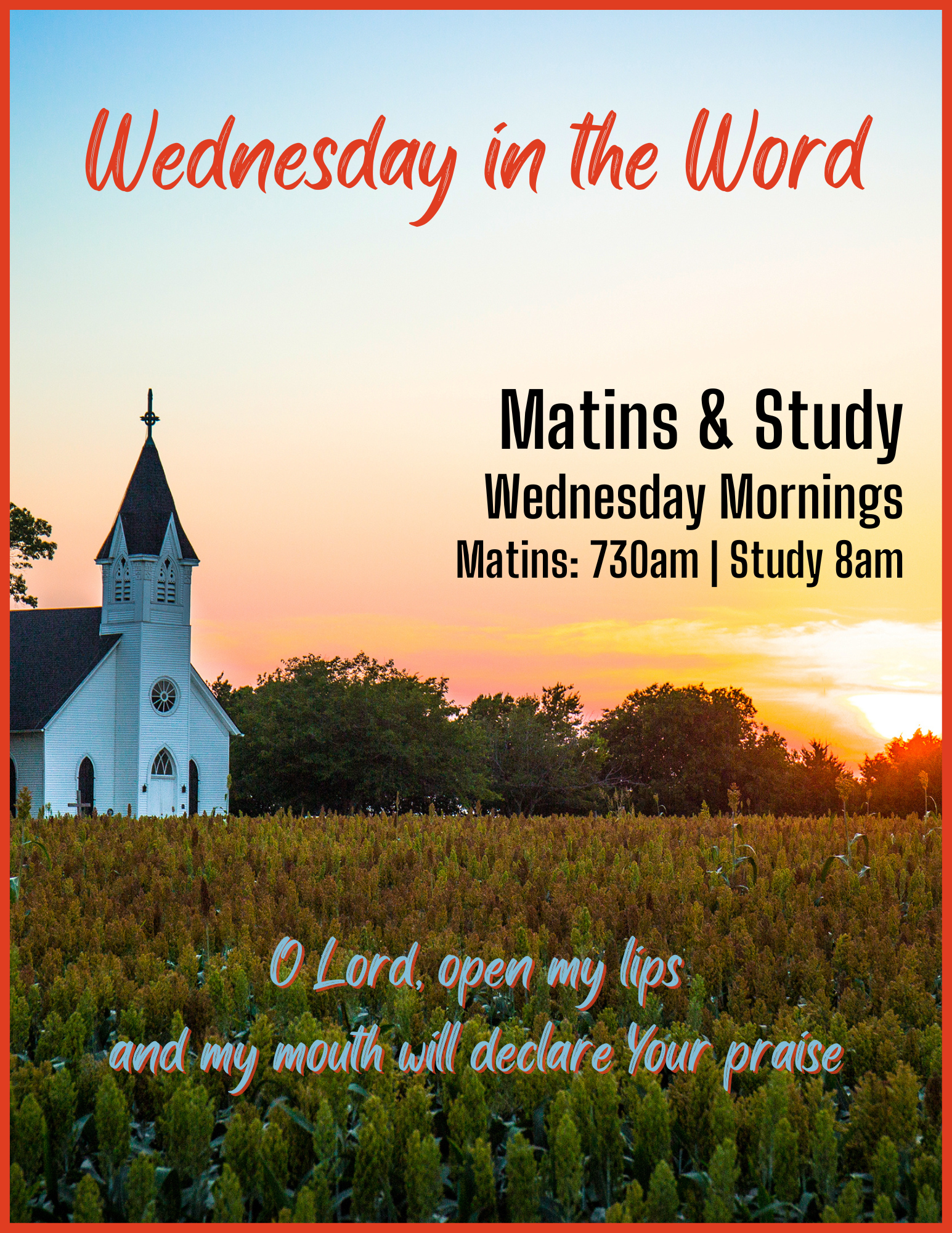 This bible study meets every Wednesday morning at 8am, immediately following Matins (morning prayer) at 730. Come get a boost midweek by resting in God’s Word.