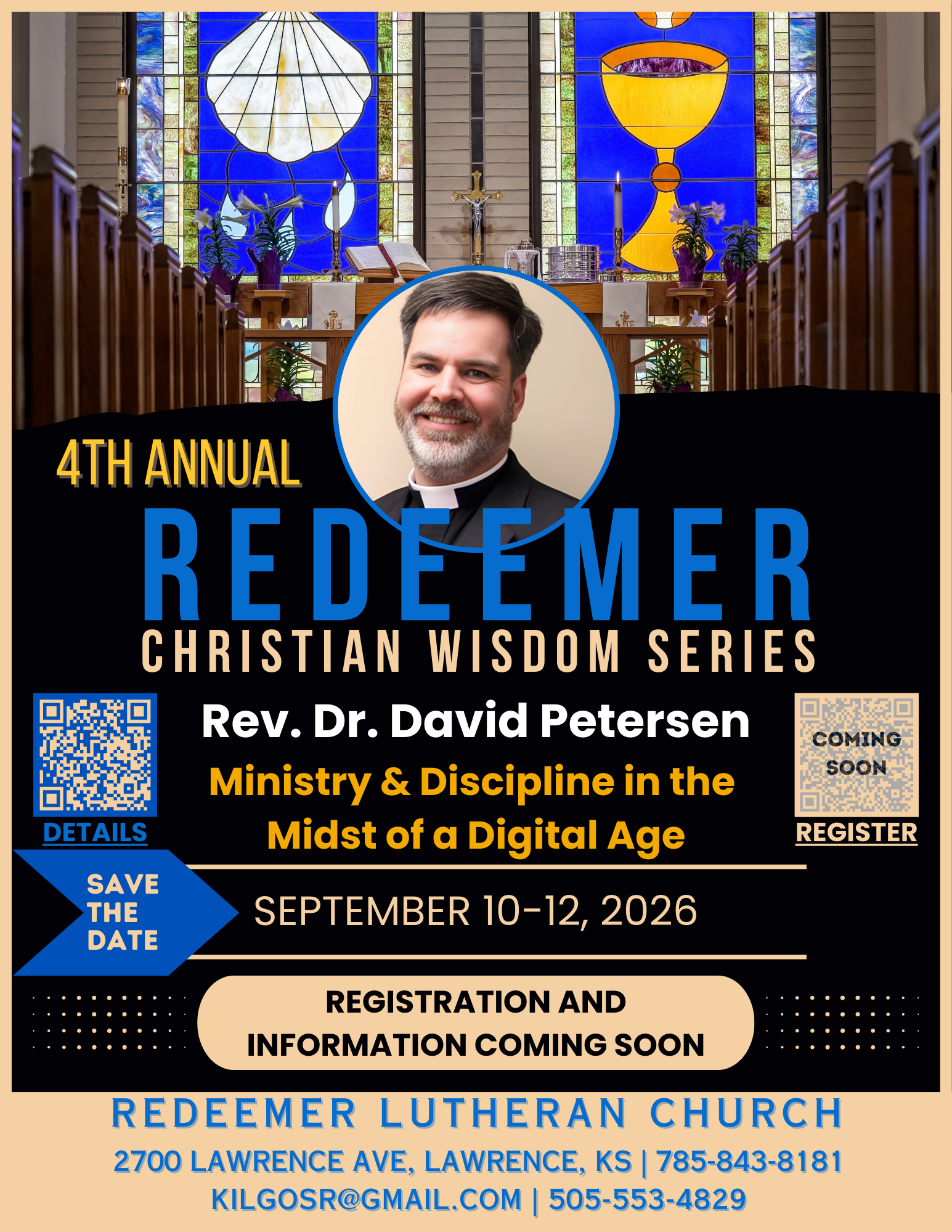 Continuing Ed & Christian Wisdom Christian Wisdom Series 2026Rev. Dr. David PetersenMinistry & Discipline in the Midst of a Digital Age More Info